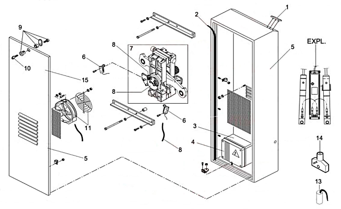 | 15 | 7270655 | 1 | Дверца корпуса для шлагбаумов FAAC серии 620, 640 |