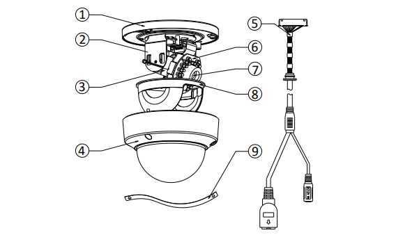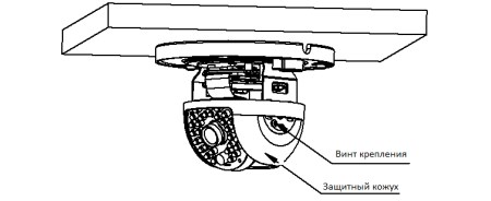 - Поворачивайте защитный кожух, чтобы отрегулировать положение панорамирования в диапазоне 180 градусов, пока не получите нужный угол наблюдения. Так как объектив уже отрегулирован на производстве, Вам необходимо отрегулировать положение панорамирования и наклона, для получения нужного угла видеонаблюдения;