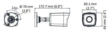 Для сжатия предназначены видеокодеки H.265+, H.265, H.264+, H.264, MJPEG, для сокращения нагрузки на сеть — 2-потоковая трансляция. Из интерфейсов на борту: сетевой порт RJ-45. Питание — DC 12 В и PoE (IEEE 802.3af). Энергопотребление — до 4.5 Вт. Размер — 69.1×66×172.7 мм, вес — 0.28 кг.