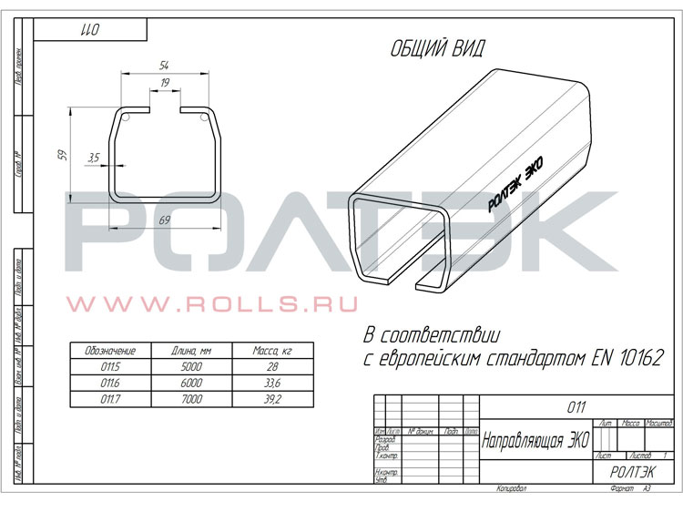 Ролтэк 011.6 Рельс направляющий ЭКО 6 метров (неоцинкованный)