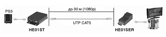 SC&T HE01SER; Пассивный приёмник HDMI- сигнала по одному кабелю витой пары(не экранированной) до 30м, размеры 24х58х22мм